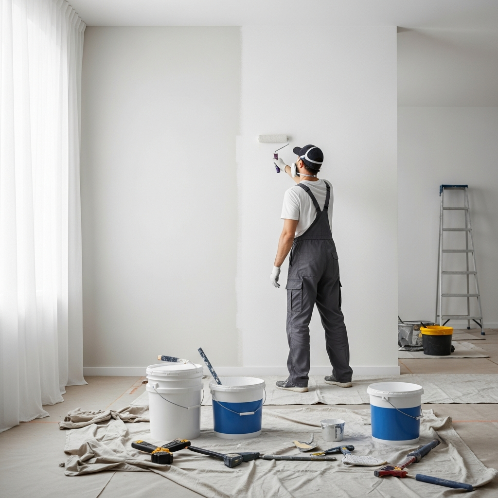 צביעת דירה גדולה סיוד דירה גדולה או בית פרטי, כולל עבודה מורכבת.